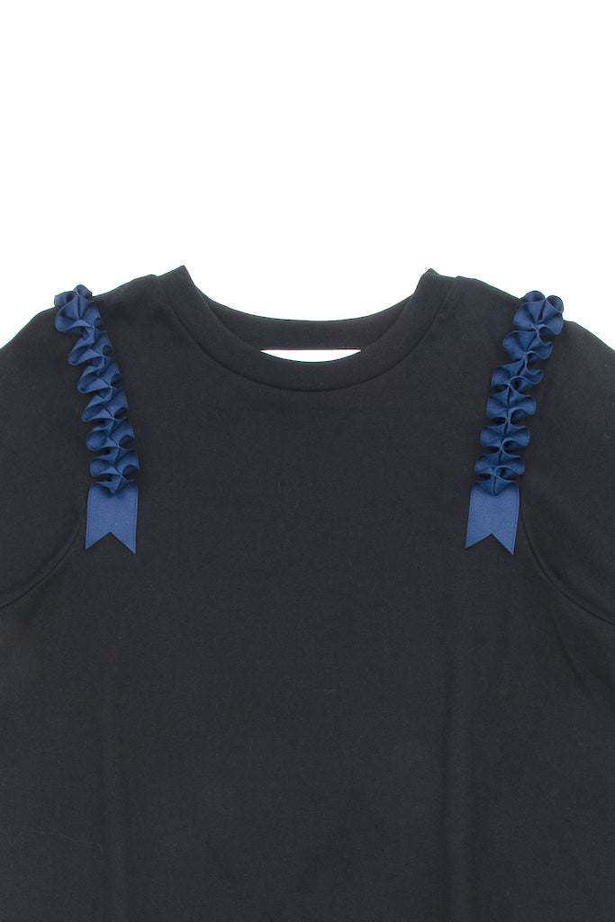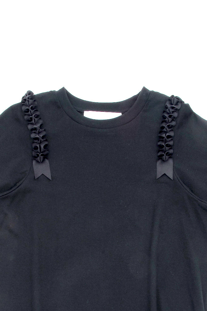 シンプルなカットソーにAnd Curtain Callの定番のホイップクリームのような加工リボンがあしらわれたトップス。